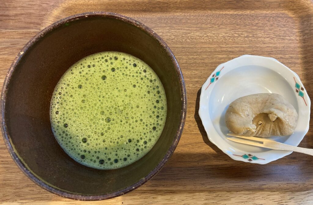 武家屋敷跡の向かいにありますので、武家屋敷跡見学後に、イートインで栗きんとんと抹茶をいただきました。