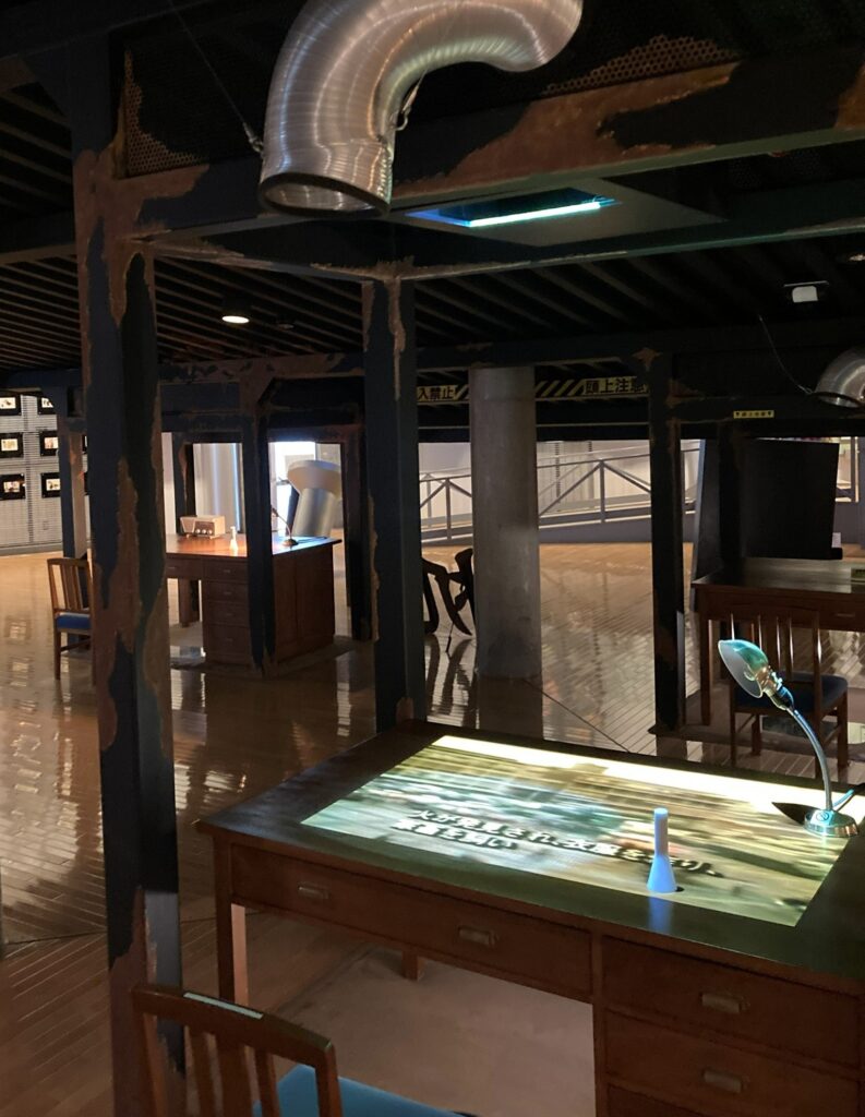 常設展は、机がたくさんあり、引き出しを開けて机の上の懐中電灯で照らして展示内容を観るという、面白い趣向のものでした。
