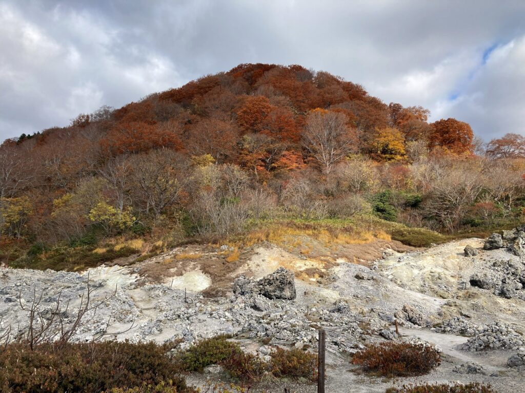 硫黄の匂いが印象的で、紅葉も相まってとても神秘的で幻想的な空間でした。