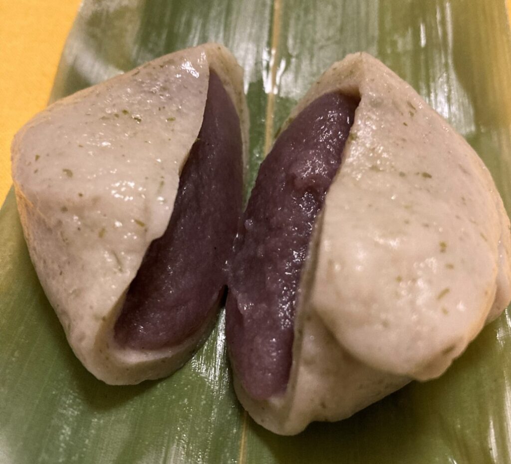 庄之助の「麩饅頭」は、青海苔を練り込んだ生地でこし餡を包み、笹の香りとともに楽しむ夏の風物詩的な和菓子です。つるりとした食感と爽やかな風味が特徴で、茶席や季節の贈り物にも好まれます。