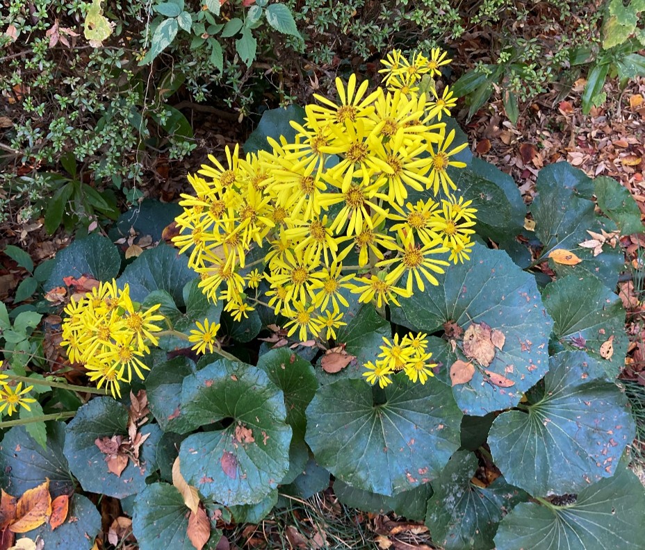 ツワブキ(石蕗)は、光沢のある丸葉と秋から冬に咲く黄色い花が特徴の常緑多年草で、日本の庭園や野山で古くから親しまれてきた植物です。