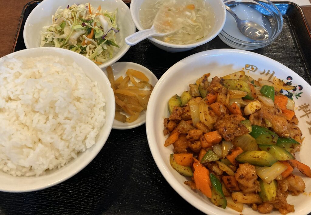 HOME食事 鶏肉のピリ辛炒め定食 2025年12月7日2025年12月9日 食事 両国にある楽蜀坊の「鶏肉のピリ辛炒め定食」は、四川料理らしい辛味と香ばしさを楽しめるランチセットで、ご飯・スープ・小鉢が付いた定食です。 鶏肉と野菜を唐辛子で炒めた四川風の一皿。鶏肉の旨味が辛さと合わさり、食欲をそそります。 辛さは四川料理らしくしっかりしています。 価格は850円 子福桜 麻辣刀削麵
